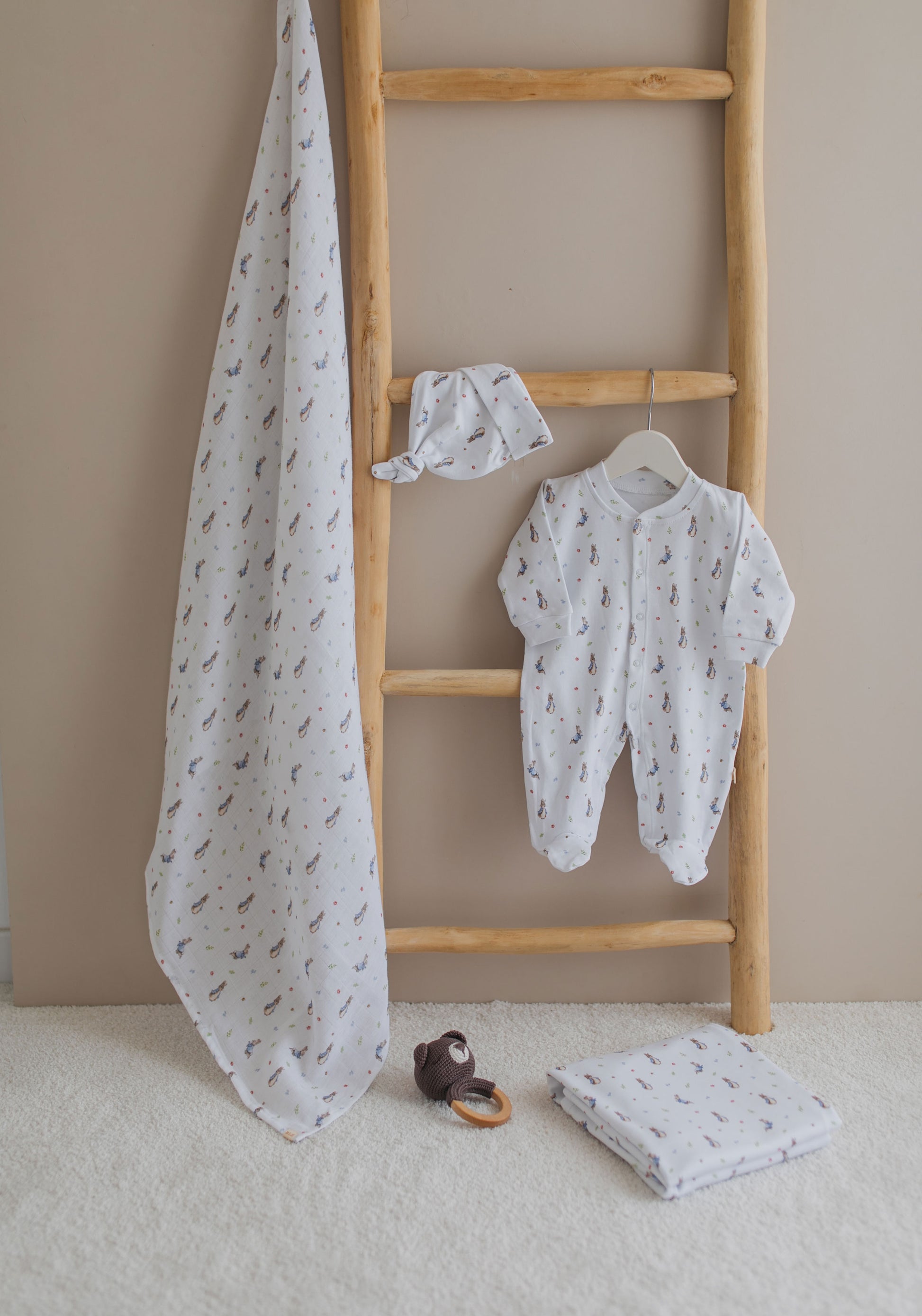 Wrap your baby in nature's tender touch with our Blue Bunny Newborn Set, because your little one deserves the very best.