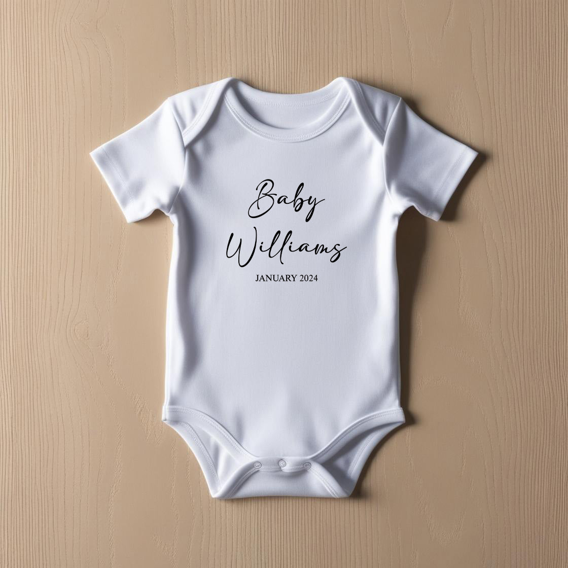 Celebrate your little one's arrival with this beautifully designed Personalized Baby Announcement Bodysuit! Whether you're sharing the news with family and friends or commemorating a special milestone, this custom bodysuit makes the perfect keepsake.