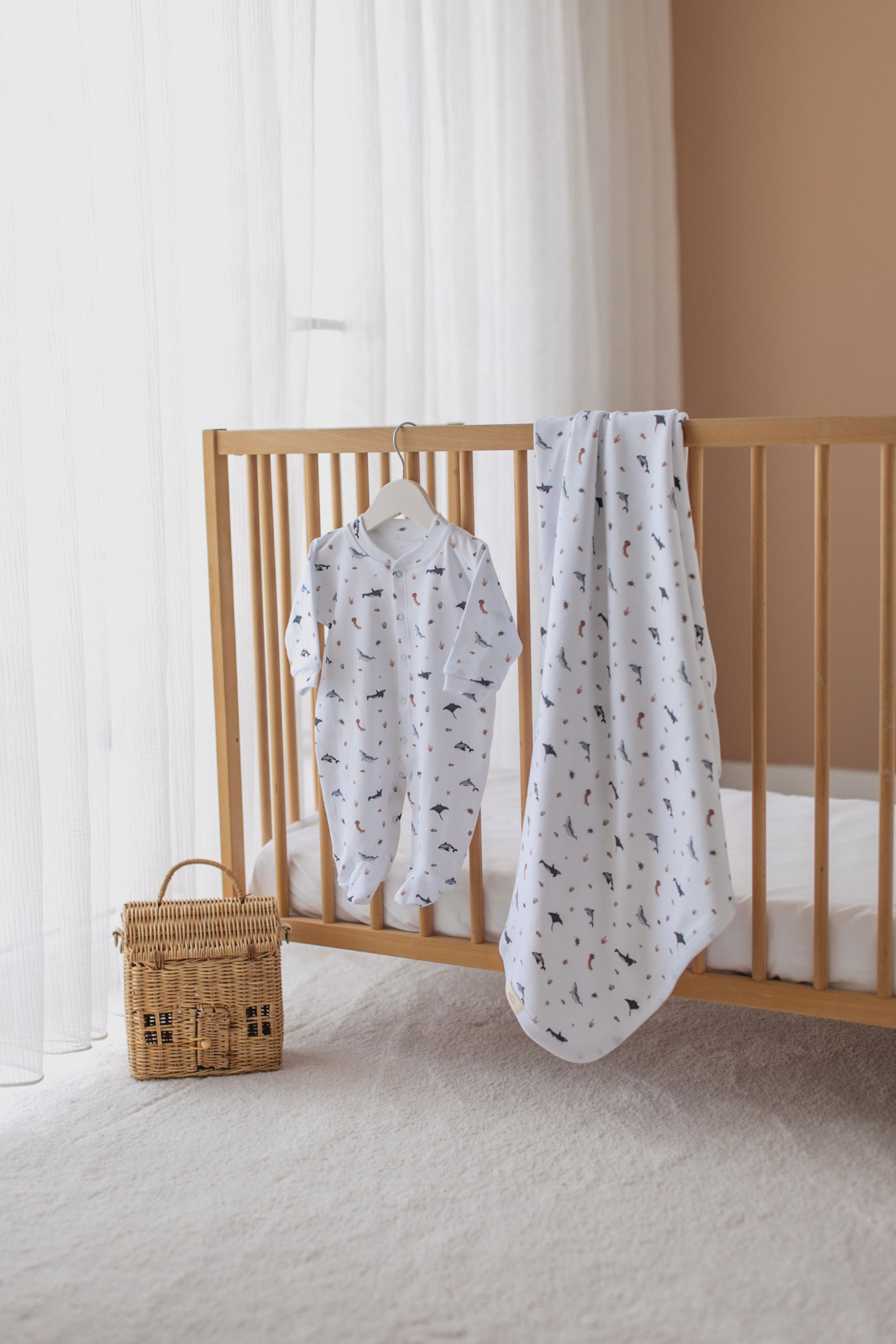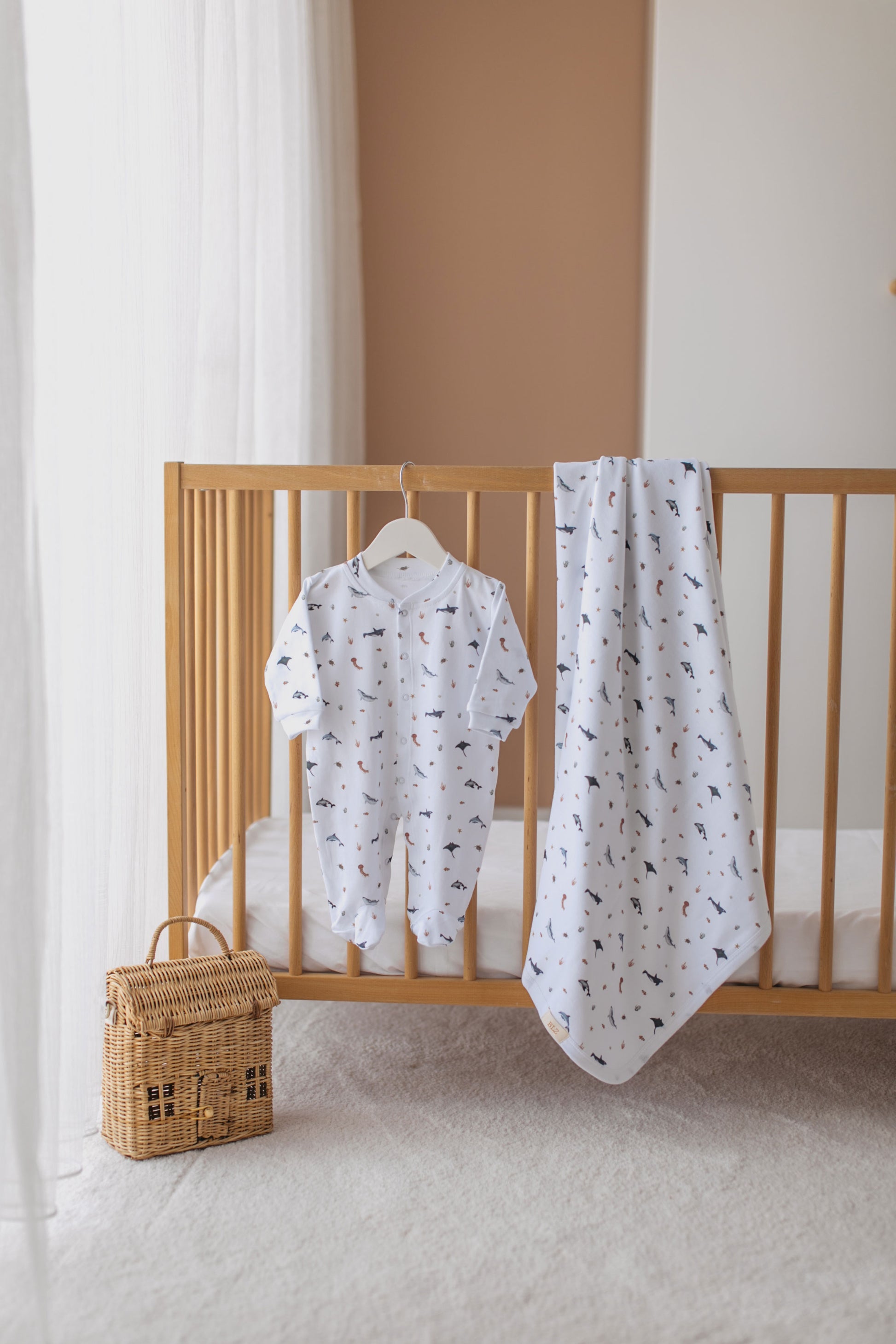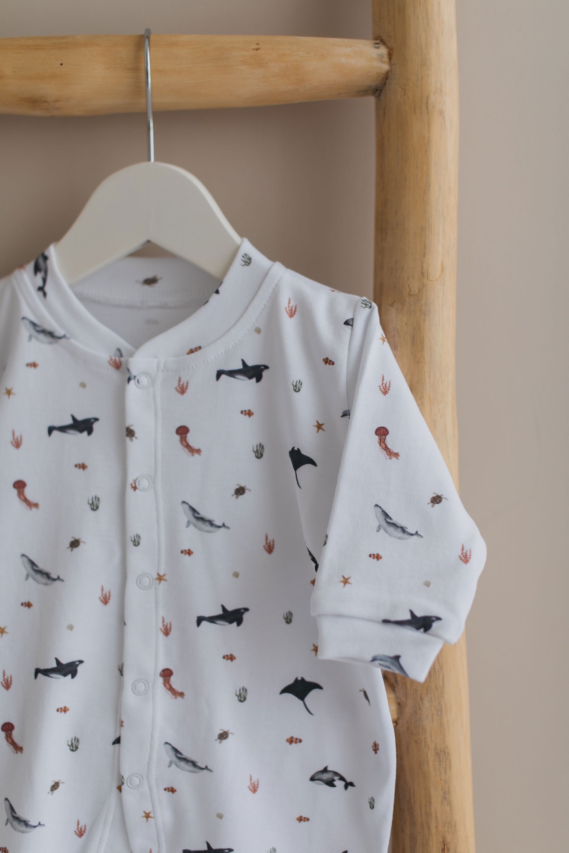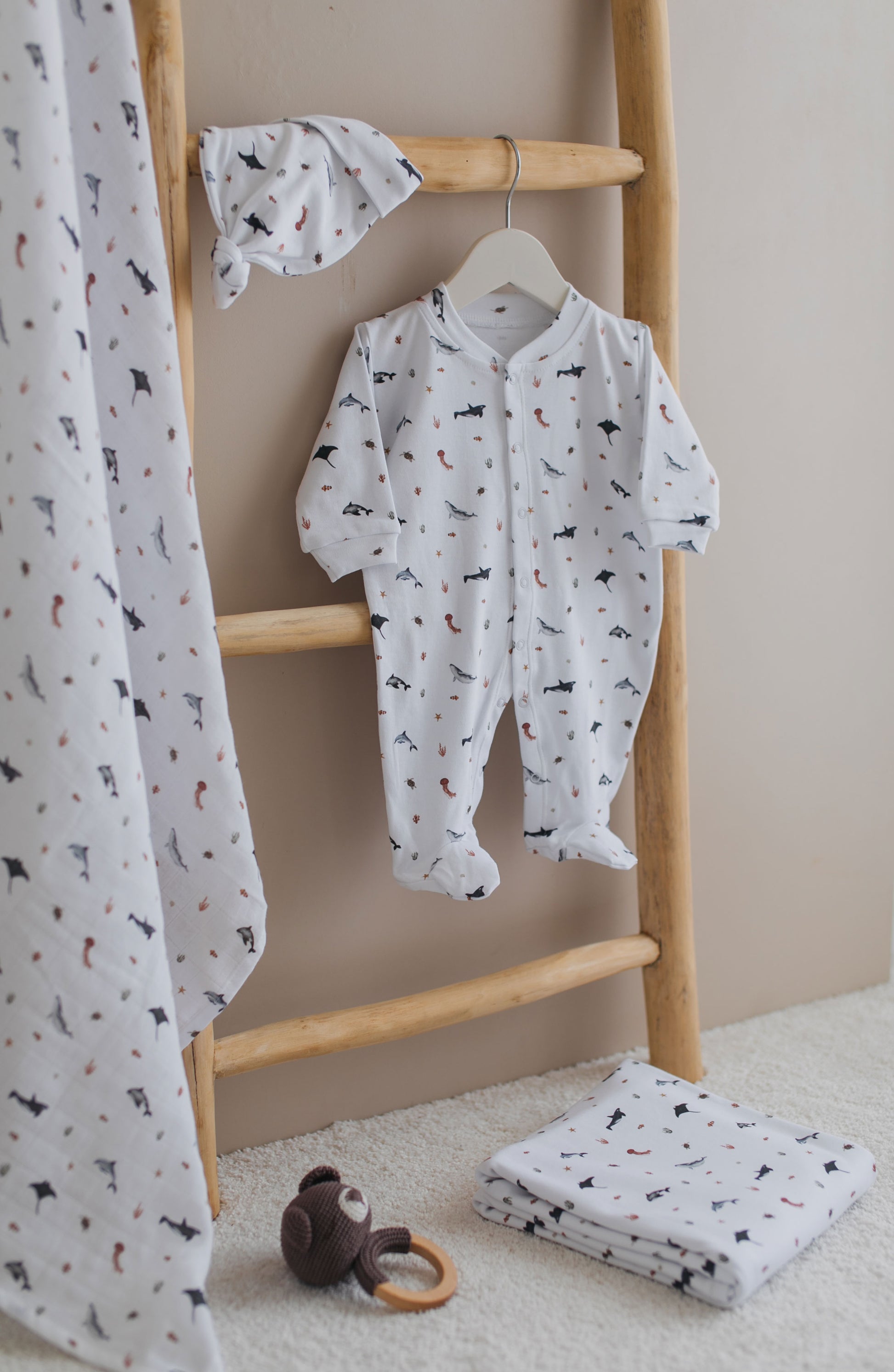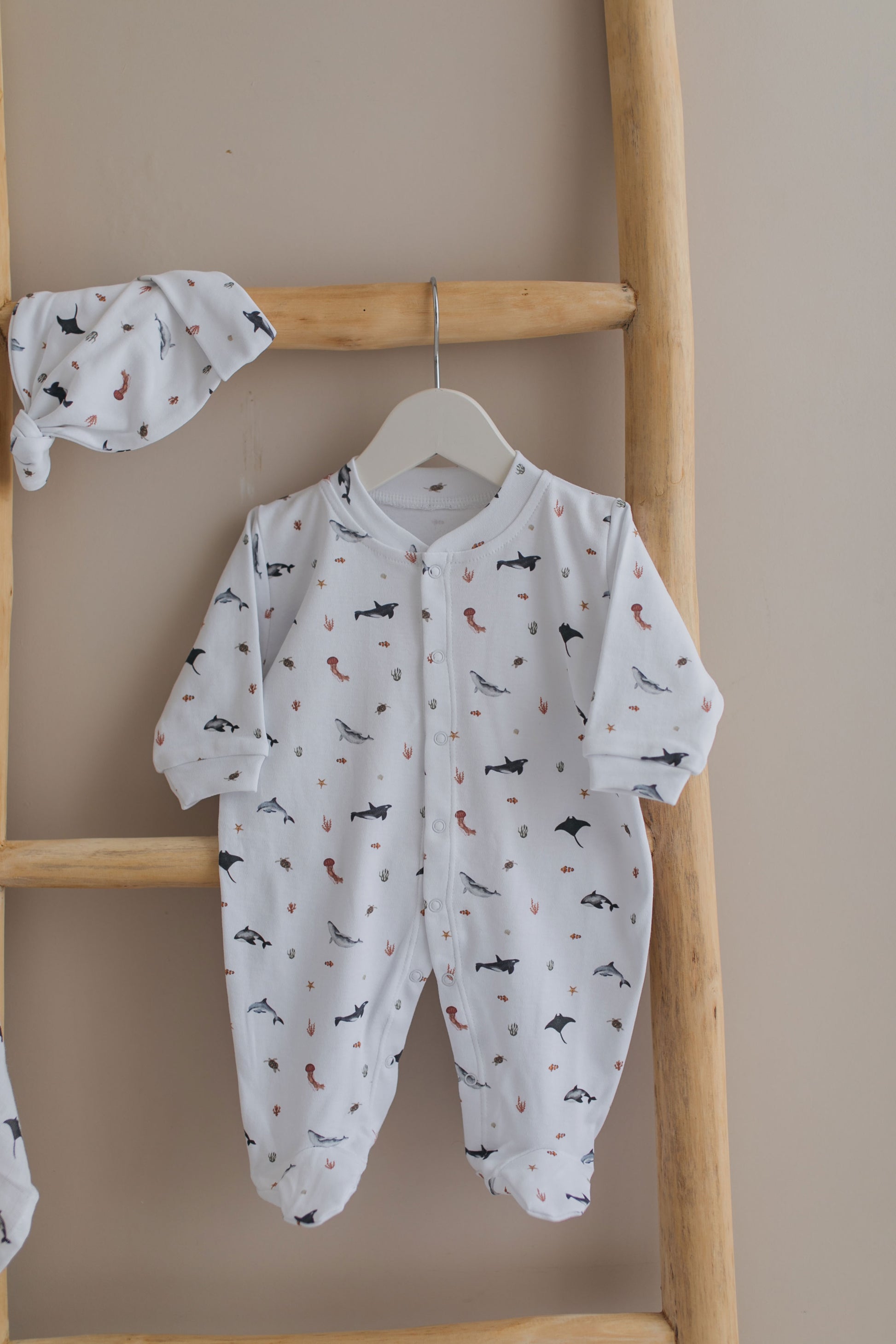 - 0/3 Months Jumpsuit: Features a playful ocean print.
