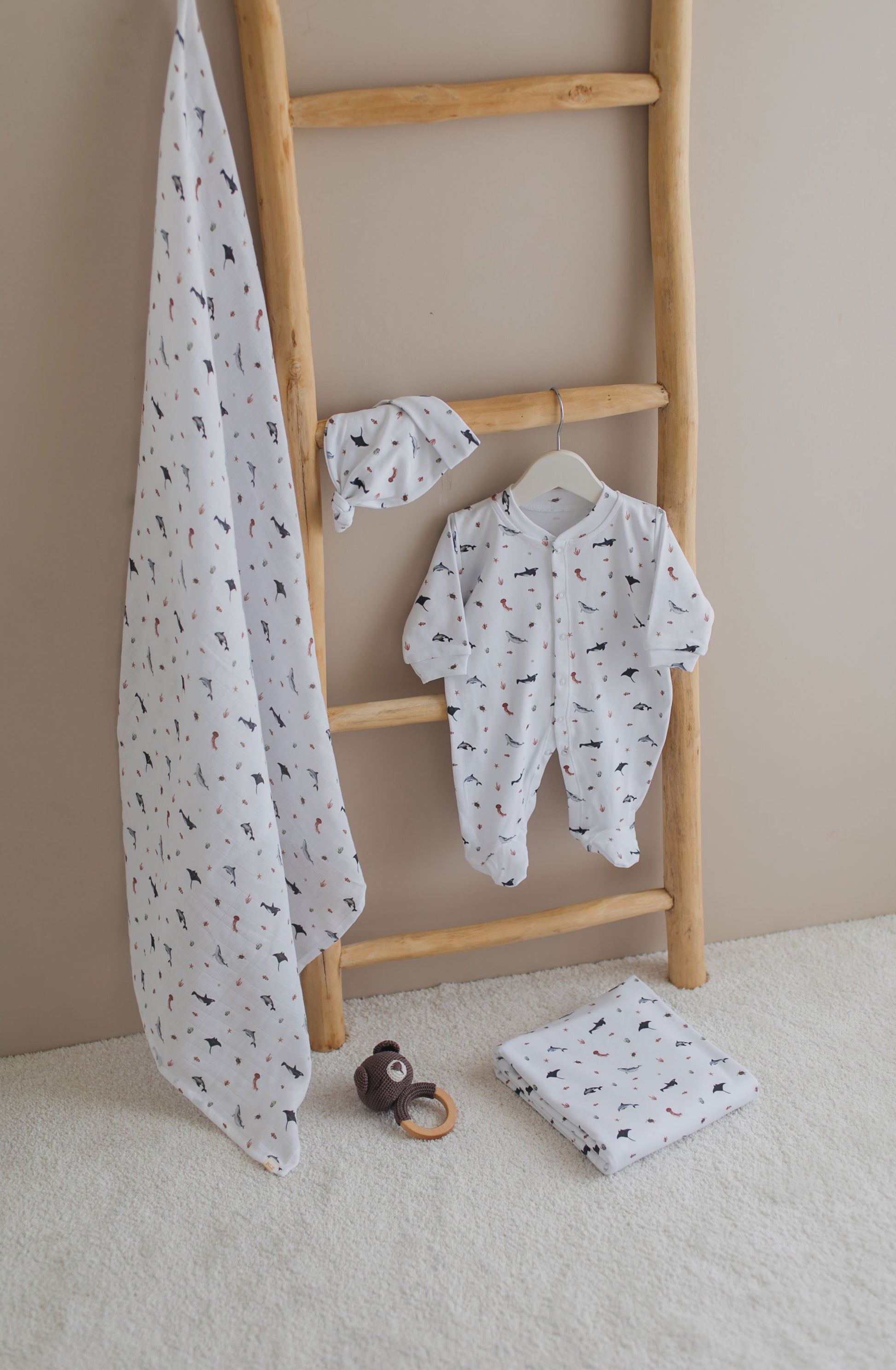 This gift set is designed to provide practicality and ease for new parents while keeping the baby comfortable.